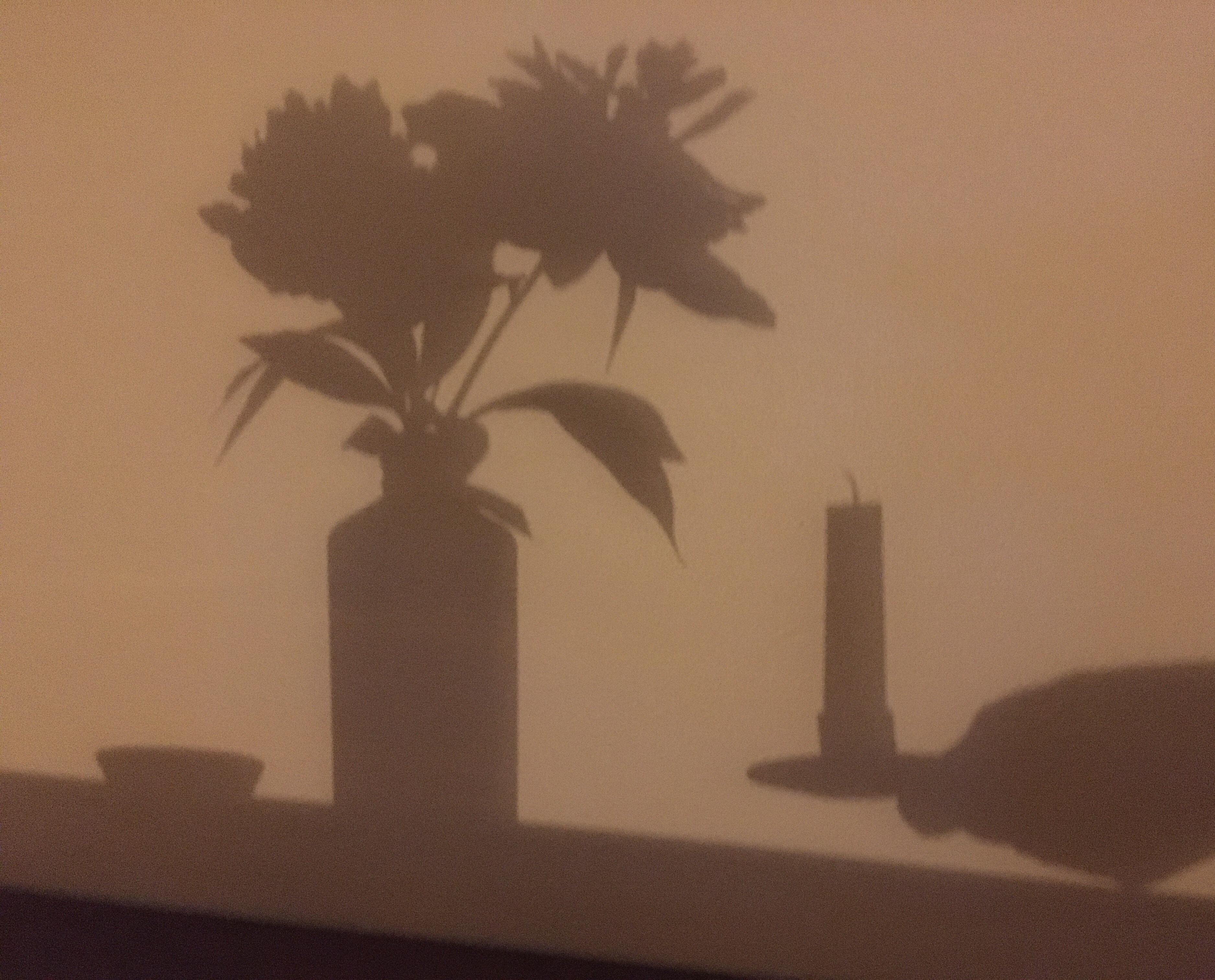 or the silhouette of a solitary candle cast upon a wall